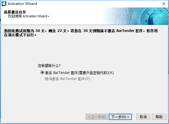 可以從BarTender“ 幫助” 菜單中,選擇“ 激活此軟件”。